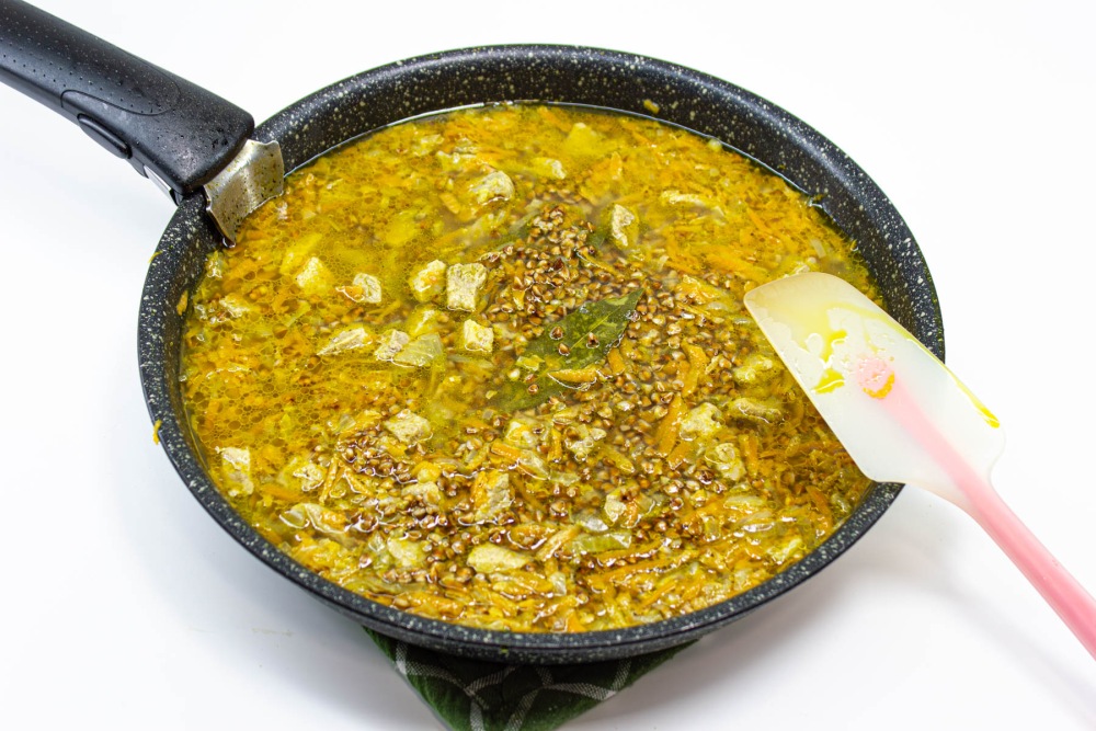 - Заранее отварите гречку до полуготовности, это ускорит общий процесс приготовления