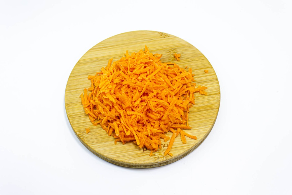 Морковь промыть, очистить от кожуры и натереть на терке.