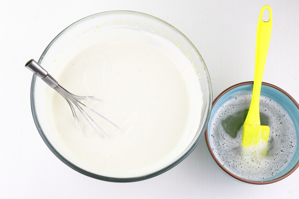 К йогуртовой массе вылить остывший желатин, помешивая венчиком.