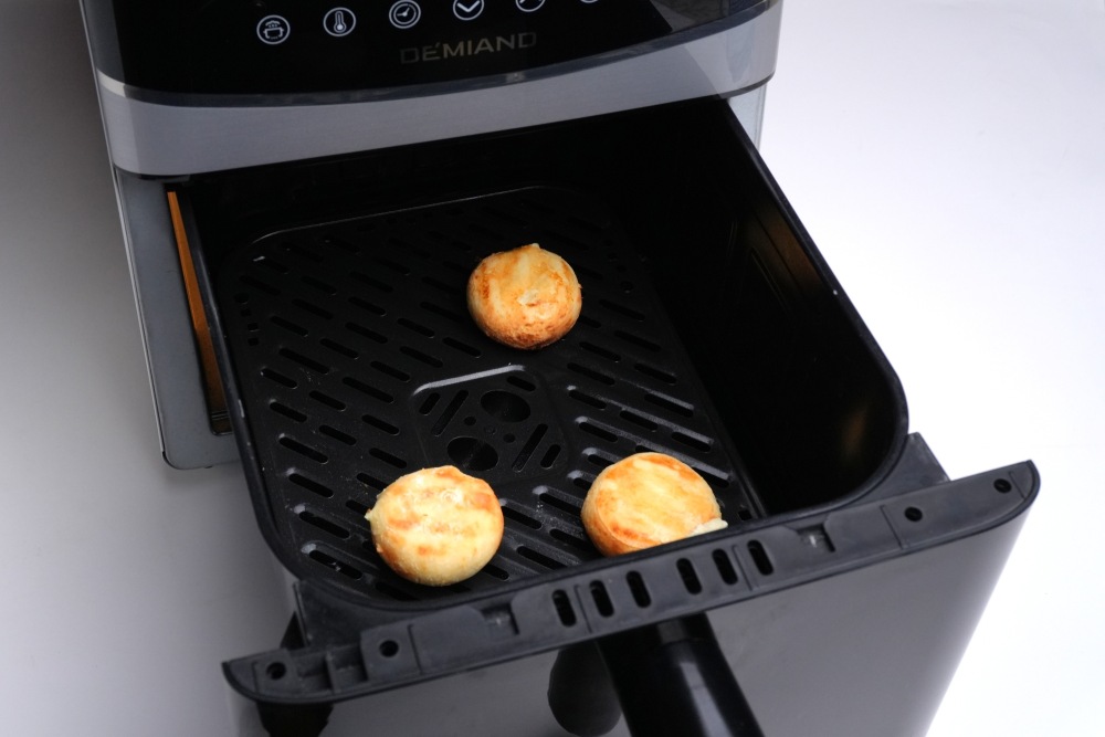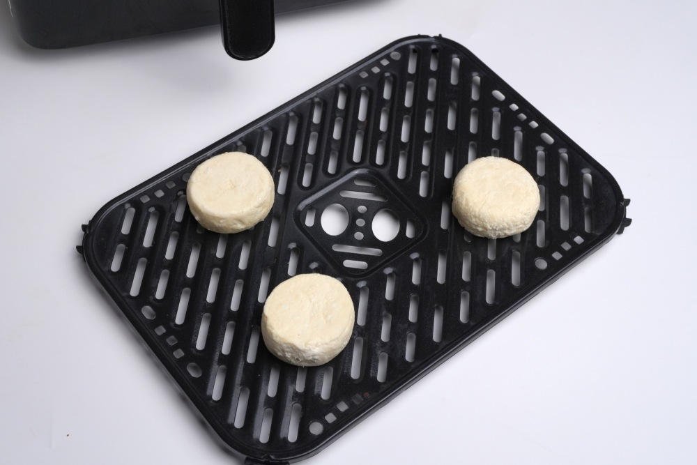 Сырники в аэрогриле: выложить полуфабрикаты на решетку или в форму, при необходимости, застеленную пергаментом. Предварительно размораживать сырники не нужно.