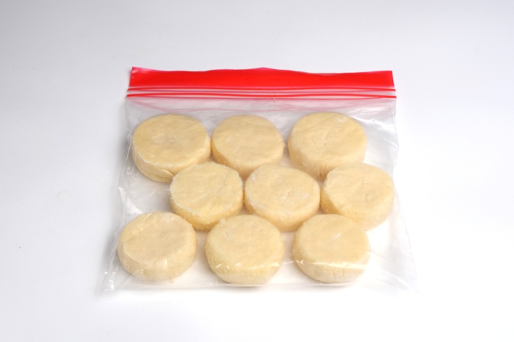 После шоковой заморозки сырники можно убрать в пакет.