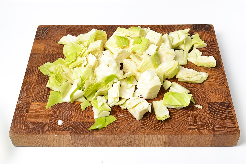 Капусту нарезать квадратиками размером 2-3 см.