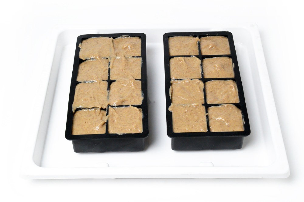 Совет: устанавливайте силиконовые формы на лоток для заморозки сразу же, чтобы не переносить их наполненными.
