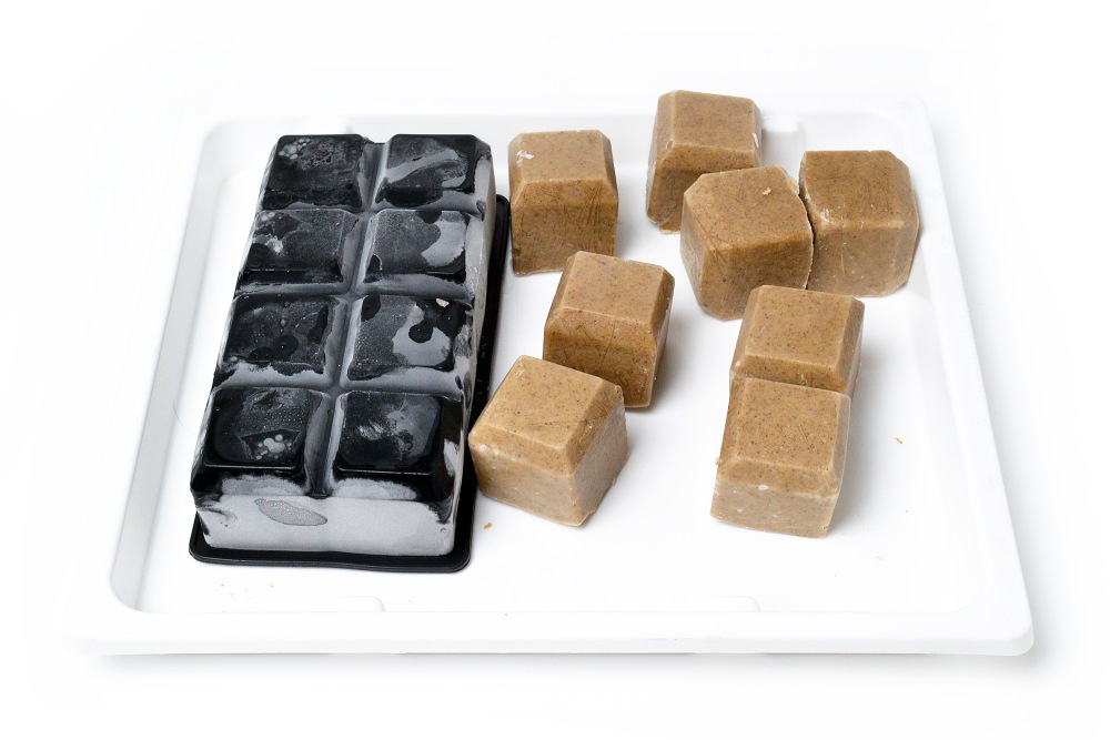 Затем выдавить кубики на лоток или большую тарелку.
