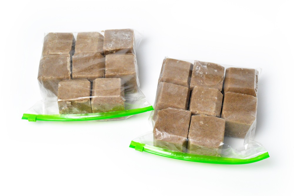 Разложить по пакетам для заморозки по столько штук, сколько нужно на одно приготовление. Готовые кубики можно завакуумировать. Обязательно подпишите дату и название, если делаете много заготовок.