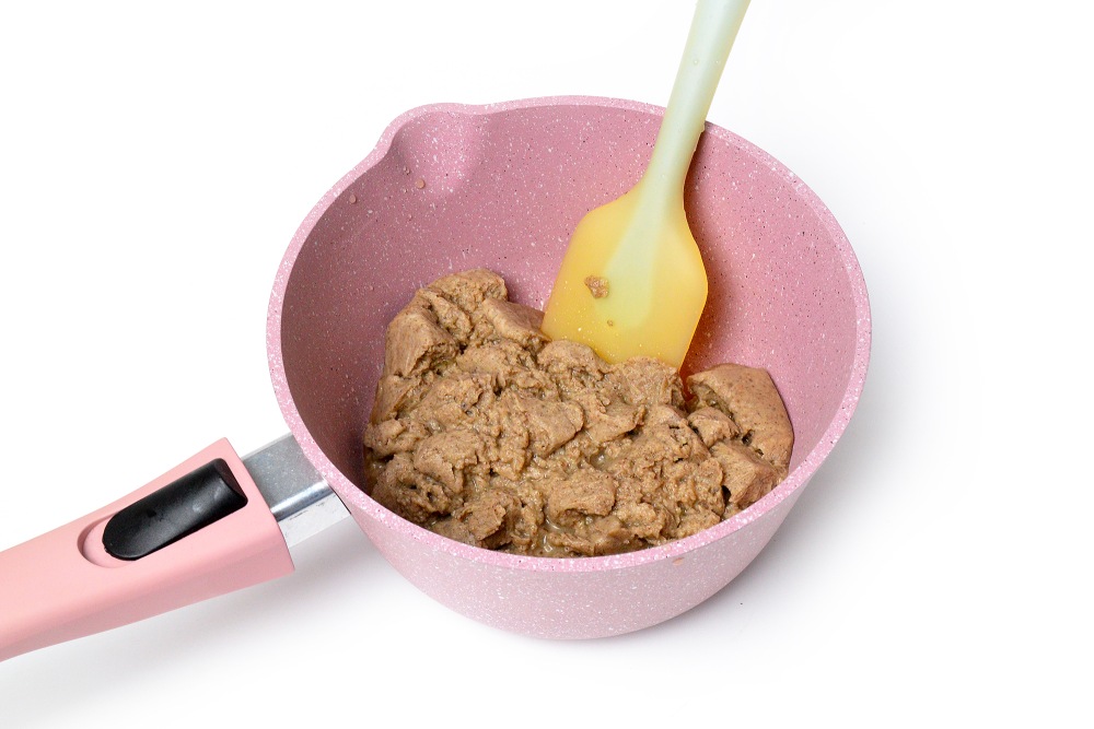 Достать, размять ложкой и поставить на огонь чуть выше среднего.