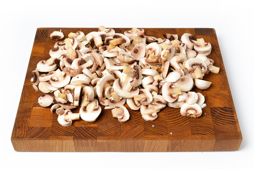 Грибы нарезать слайсами – одинаковыми их делать не обязательно, так как суп будет измельчаться.