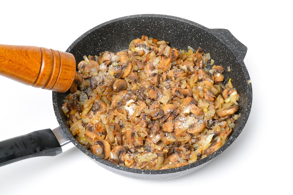 Грибы посолить и поперчить.