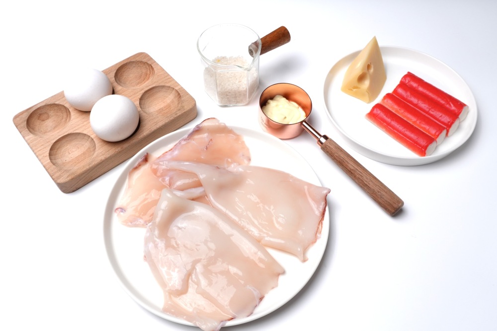 – Кальмары лучше взять очищенные, это сэкономит нервы и время. Даже у очищенных кальмаров нужно проверить и, если есть, снять прозрачную пленку, а также убрать пластиковую “палочку” внутри – это хитин. Перед начинкой кальмары обсушить бумажным полотенцем.