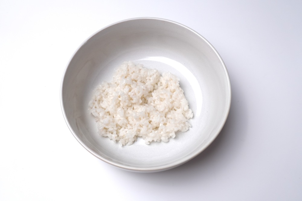 Залить рис водой 1:2, поставить на средний огонь. Как вода закипит, накрыть сотейник крышкой и убавить огонь до минимального. Варить до испарения воды 5-7 минут, выключить огонь и оставить рис "отдыхать" под крышкой. Затем переложить в глубокую емкость и остудить.