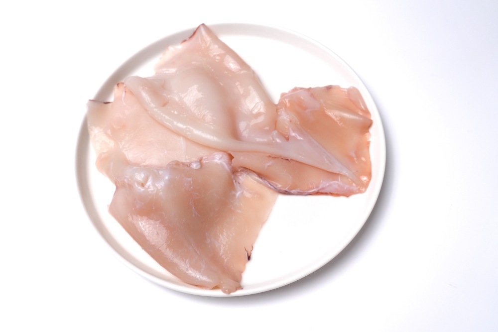 Кальмар промыть, очистить от прозрачной пленки, убрать хитин (прозрачная пластина внутри). Промокнуть бумажным полотенцем.