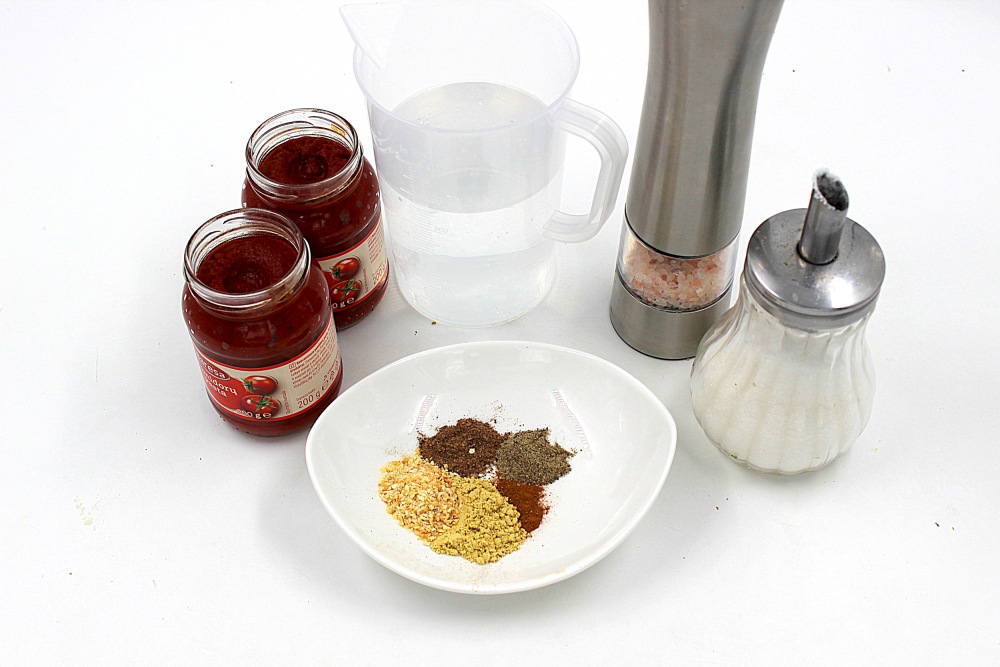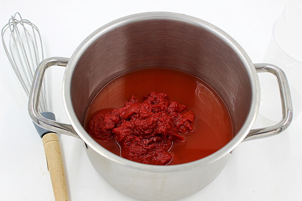 Возможно вам понадобится больше или меньше воды. Вода нужна для того, чтобы развести томатную пасту до нужной вам консистенции. Тут однозначно невозможно дать идеальные граммы или миллилитры, поскольку густота пасты разных производителей может и скорее всего будет отличаться. У меня довольно густая паста.