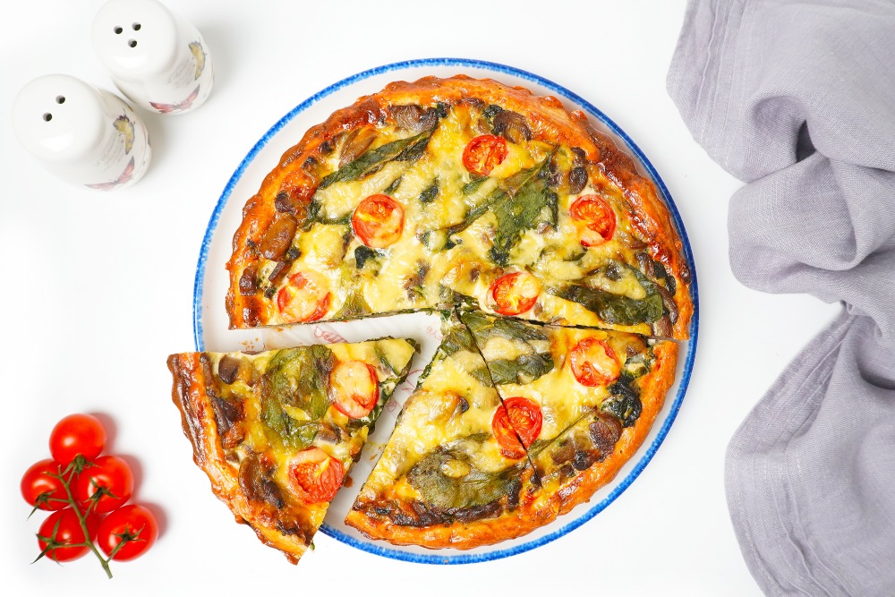Киш с грибами и шпинатом