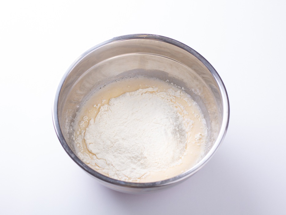 Добавить муку. Заранее просейте ее, так тесто будет еще более воздушным.