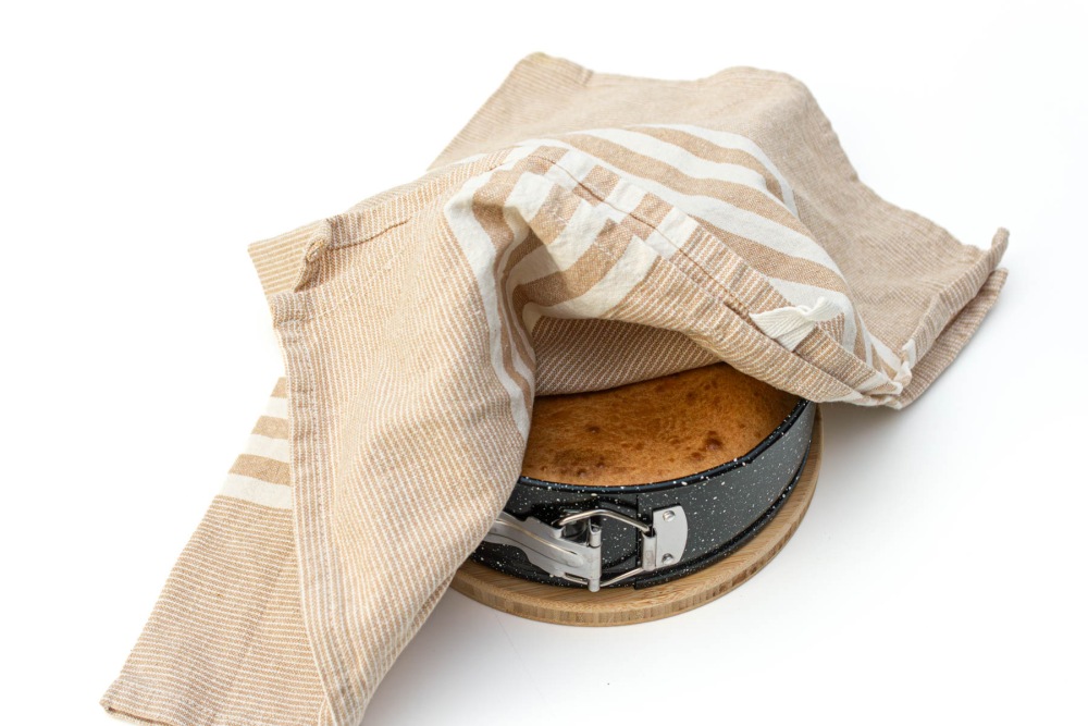 Накрыть полотенцем пирог и дать "отдохнуть" и остыть 10-15 минут.