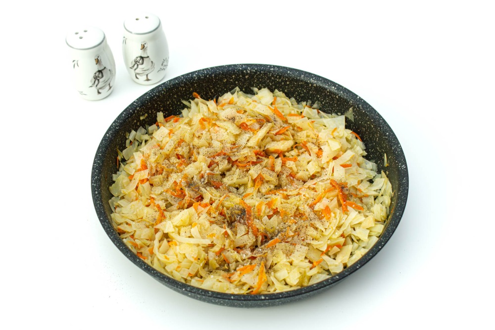 Для начинки лучше выбирать свежую белокочанную капусту среднего размера — она сочная и после тушения становится мягкой, но не превращается в кашу. Предварительная обжарка овощей позволяет убрать лишнюю влагу и сделать вкус более насыщенным. При желании можно добавить любимые специи или немного зелени.