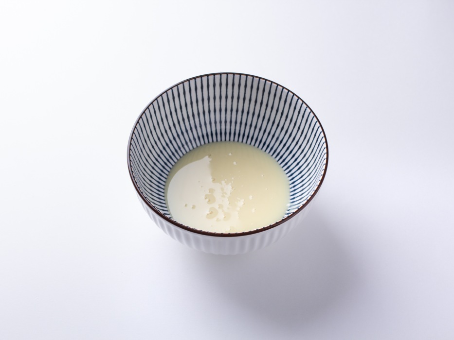 Налить сгущенку в удобную для смешивания всех ингредиентов миску.