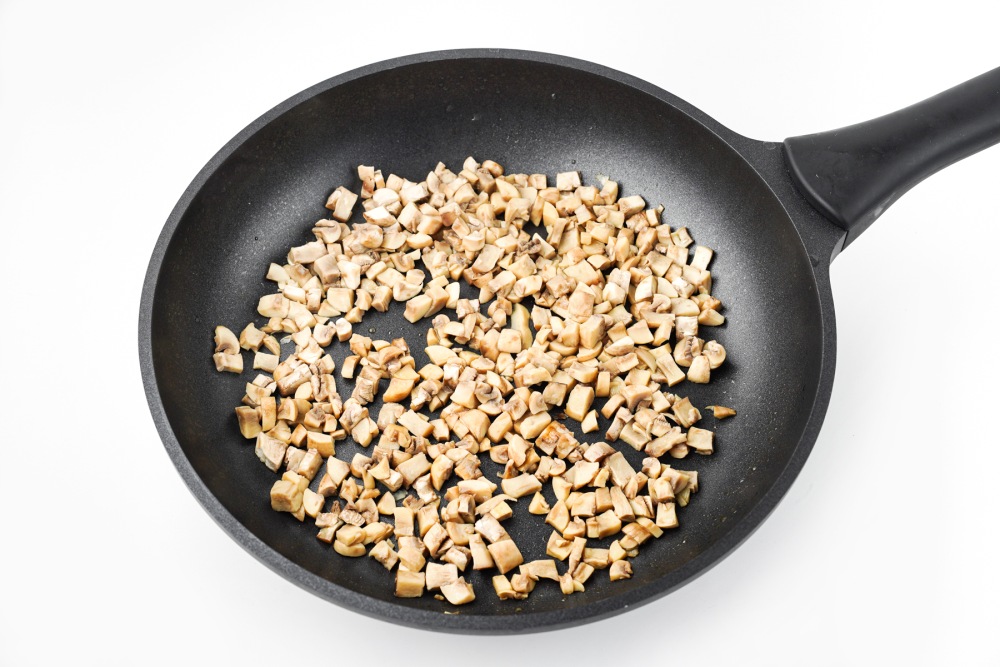 Промыть и нарезать кубиками грибы.