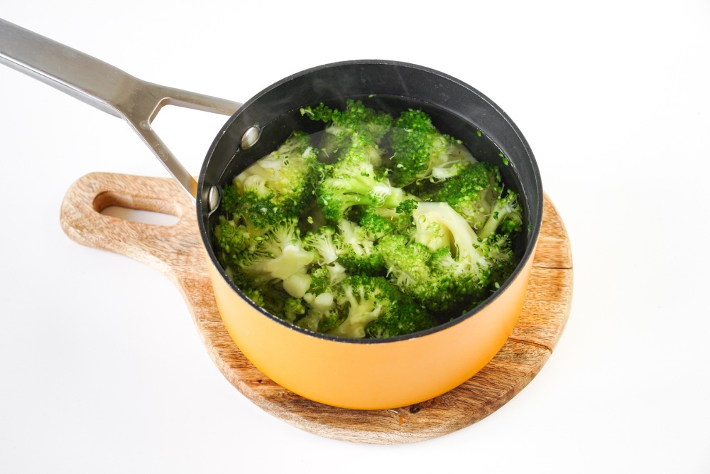 Вскипятить воду, закинуть брокколи и варить 3–4 минуты.