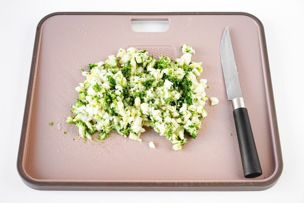 Полностью остывшую брокколи мелко порубить ножом. Кусочки должны быть небольшими, но не превращать их в кашу, так котлеты будут интереснее по текстуре.