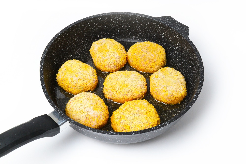 - Чтобы котлеты не были жирными, хорошо разогревайте масло. Тогда панировка не будет впитывать лишний жир, сок из котлет не будет выделяться и они останутся сочными.