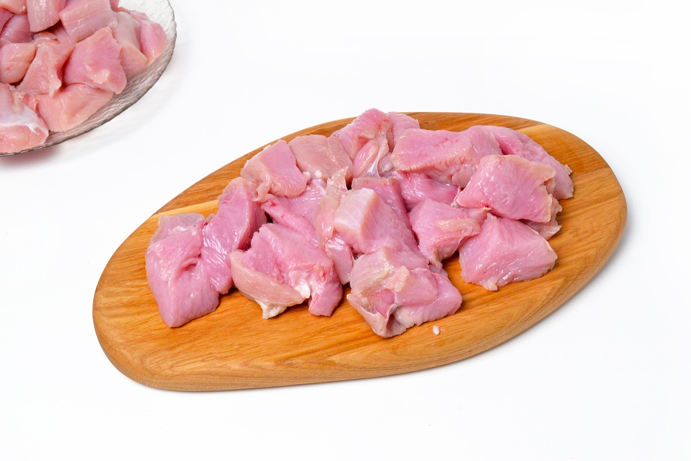 Индейку крупно нарезать – так, чтобы кусочки легко прошли в мясорубку.