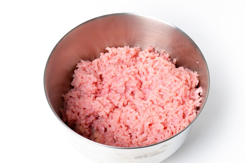 Прокрутить мясо через мясорубку со средним диском (4-6 мм), если у вас их несколько.