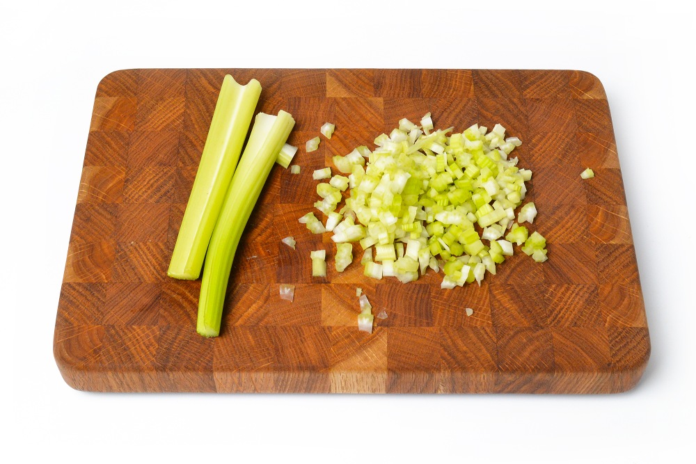 Сельдерей нарезать максимально мелко. Слишком крупные кусочки будут долго готовиться и могут сильно ощущаться в котлетах.