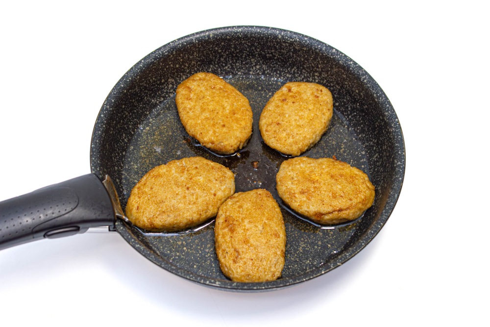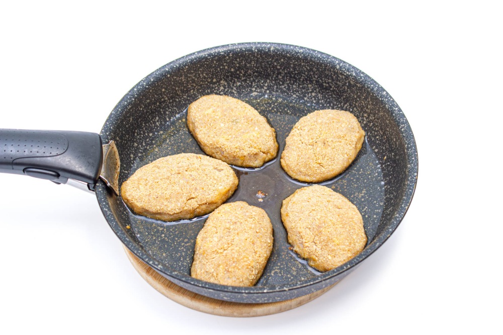 Выложить на сковороду необходимое количество котлет. Жарить на среднем огне/мощности в течение 5-7 минут до золотистой корочки.