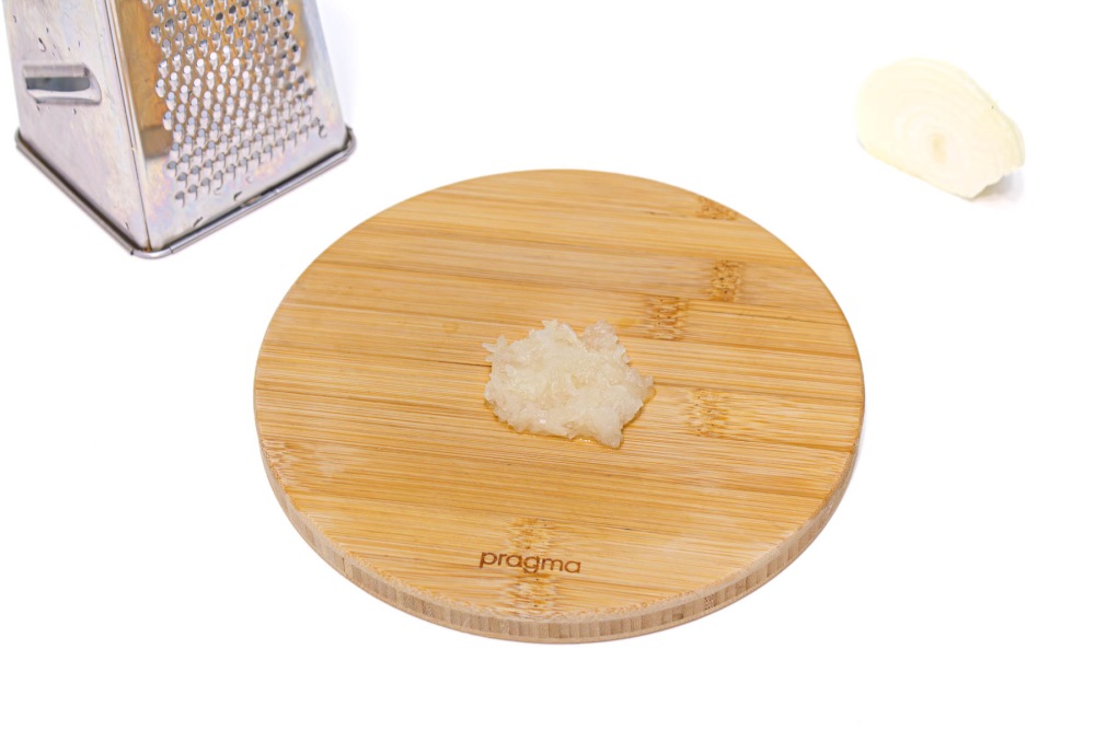 - Для ускорения процесса заранее натрите лук на мелкой терке и дайте стечь лишней жидкости.