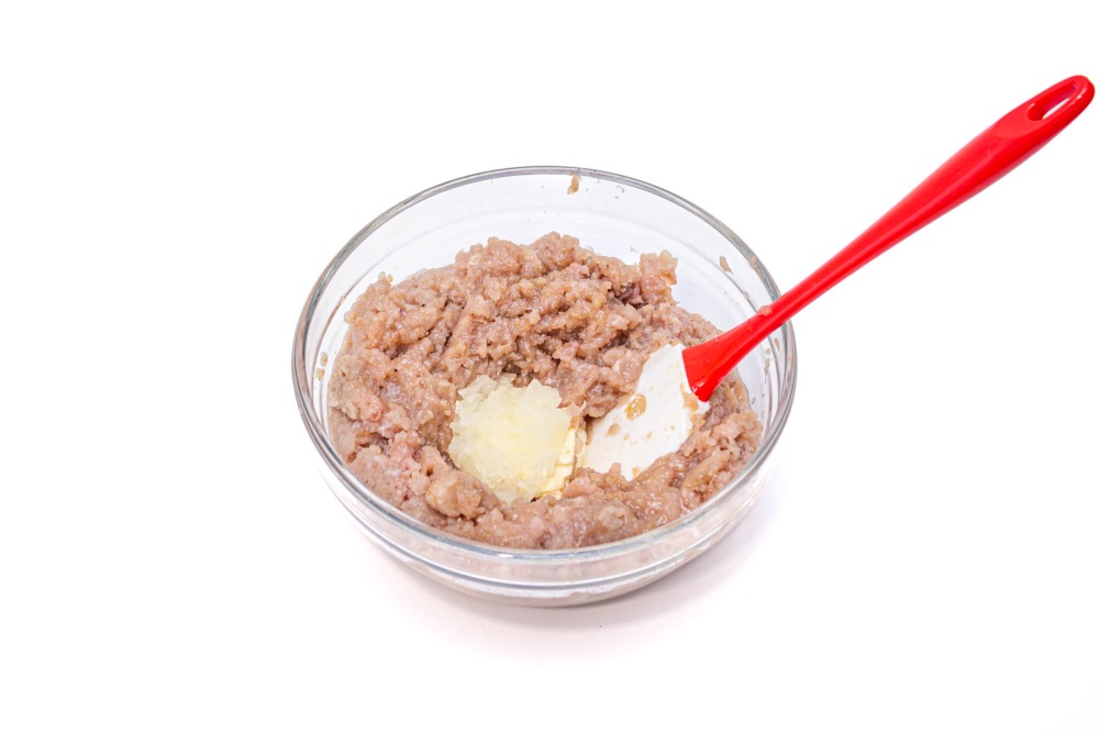 Если вы готовите фарш самостоятельно, то блендерите или пропустите через мясорубку вместе с рыбой.