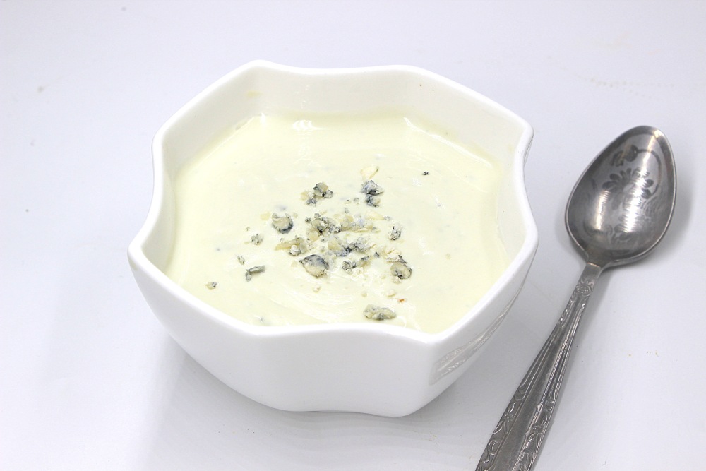 Чаще этот соус делают на основе йогурта или сметаны. Туда мелко крошится голубой сыр, измельченный зубчик чеснока, чуть соли и перца.