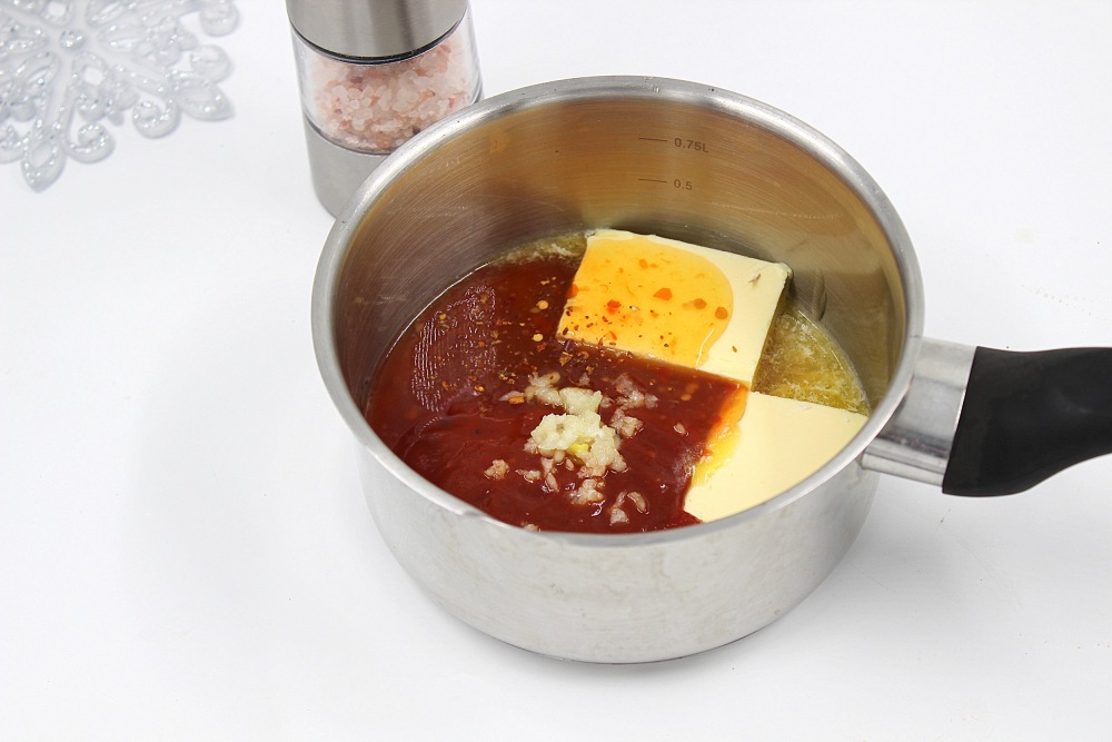 Соус готовится перед подачей крылышек. Он должен быть горячим.