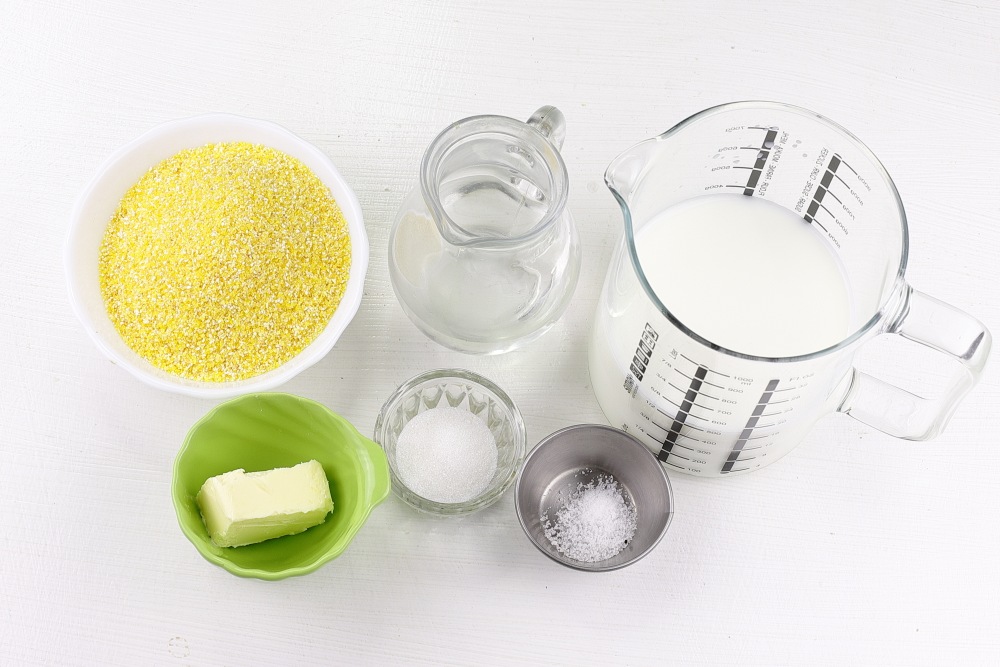 Подготовить необходимые ингредиенты для рецепта кукурузной каши в мультиварке на молоке.
