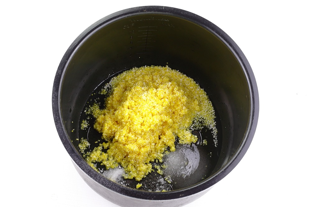 Кукурузную крупу хорошо промыть до прозрачности воды.