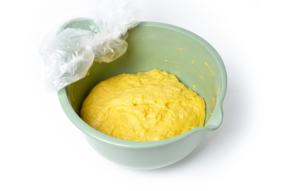 Оставить подниматься в теплом месте на 40-60 минут, накрыв пленкой.