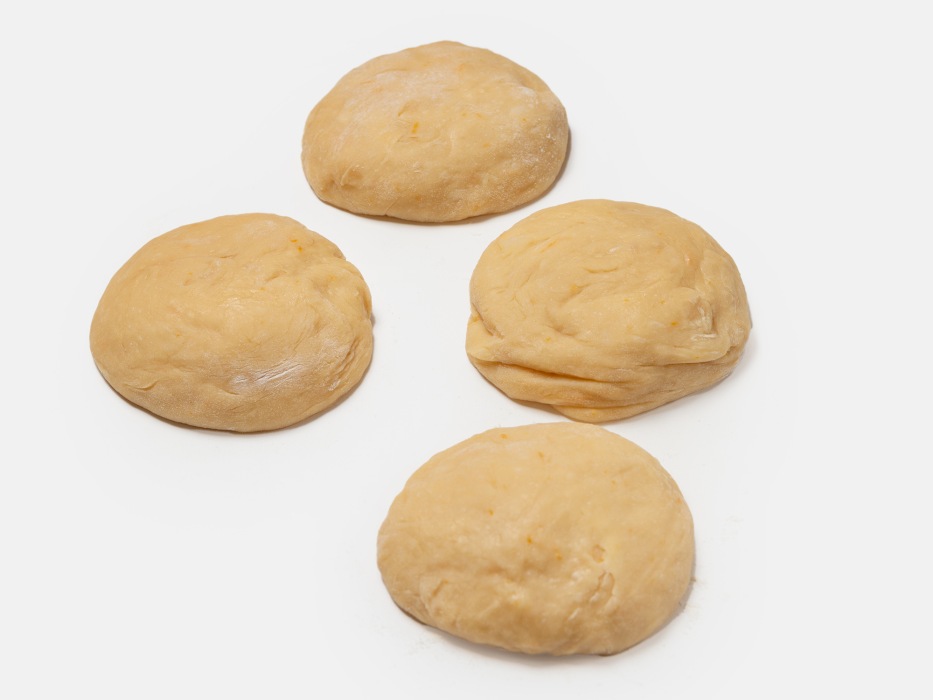 Тесто обмять руками и разделить на равные части.