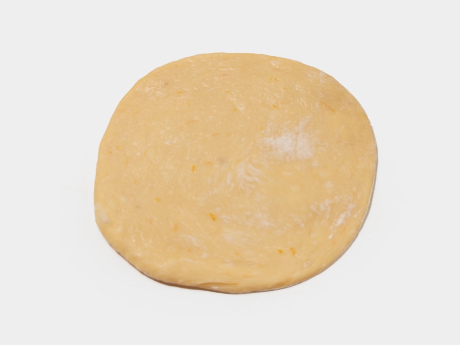 Раскатать тесто в овал толщиной 1 см.