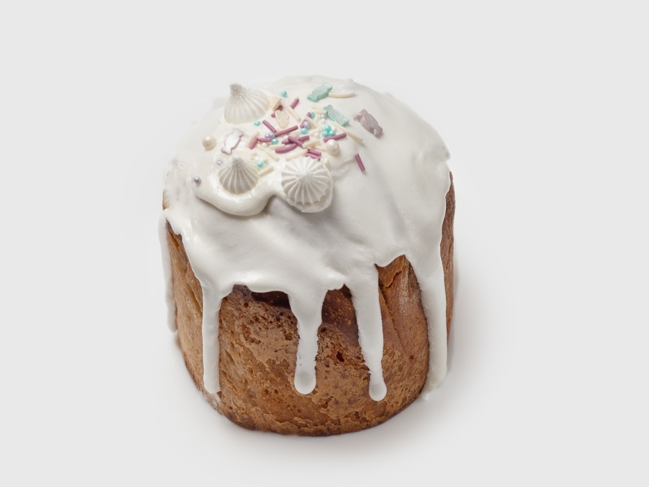 Украсить кулич глазурью и посыпкой.