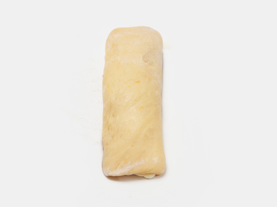 Завернуть тесто в трубочку, осторожно сворачивая.