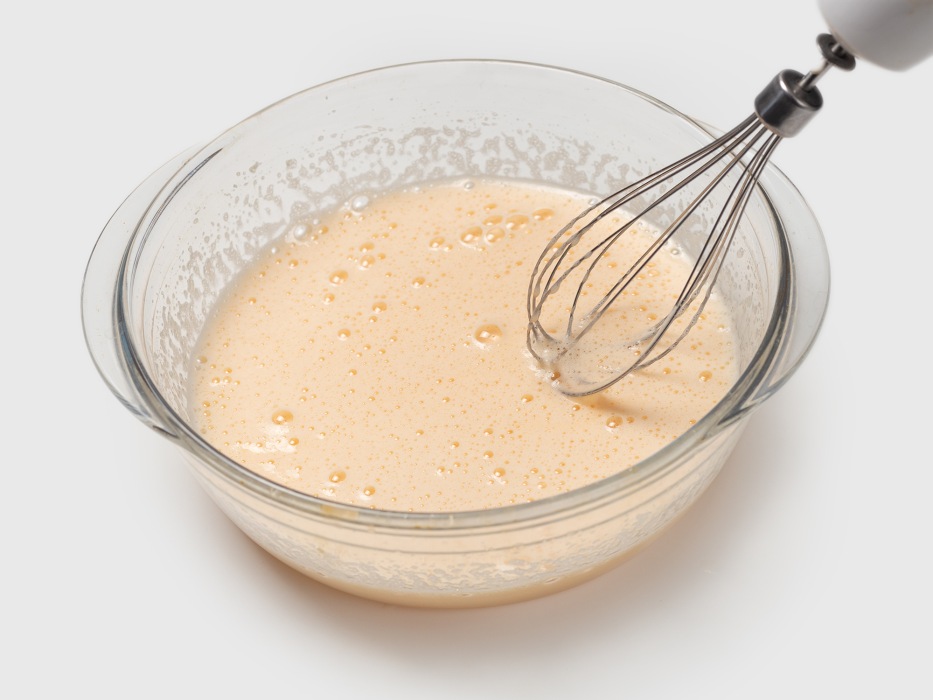 Смешать яйцо, крахмал, сахар и немного молока.
