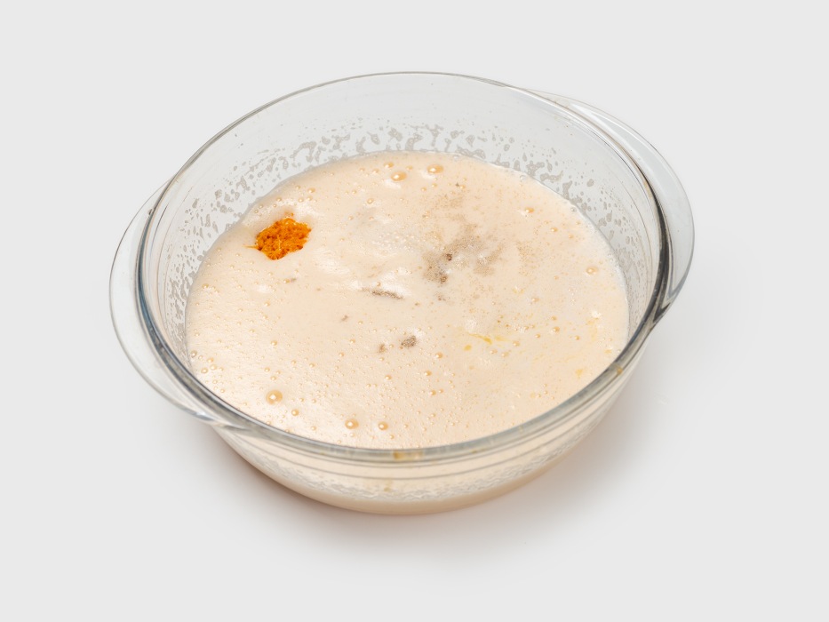 Накрыть дрожжи с молоком пищевой пленкой и оставить в теплое место подниматься на 15 минут до появления пенки на поверхности.