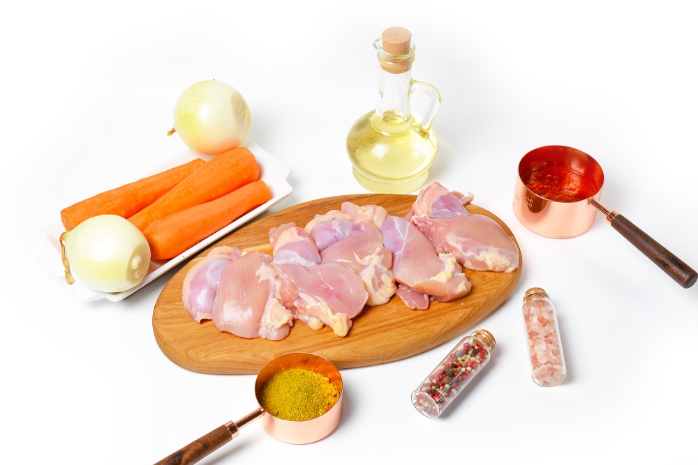 С рецептом сможет справиться даже ребенок. Приготовить его можно как из филе бедра, так и из бедрышек с костями. Только предварительно их нужно разрезать на кусочки, чтобы проще было обжаривать и удобнее есть. Для максимальной экономии времени также подойдут замороженные заготовки из тертой моркови и нарезанного лука, которые нередко используют для варки супов.
