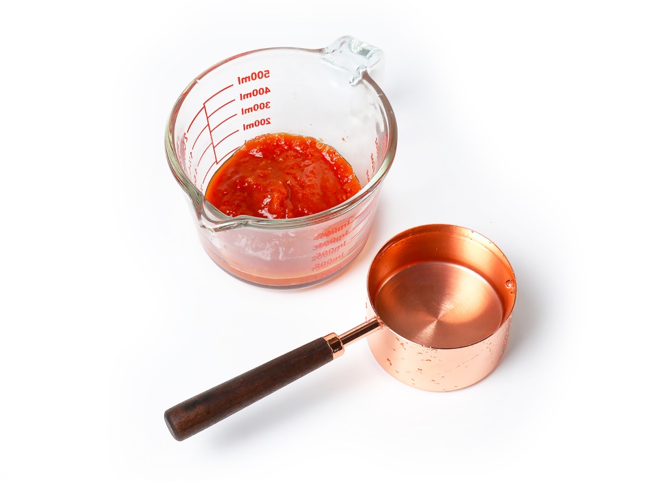 Томатный соус развести горячей водой. Добавляйте сначала 250-300 мл воды. Лучше влить потом, если жидкости окажется мало.
