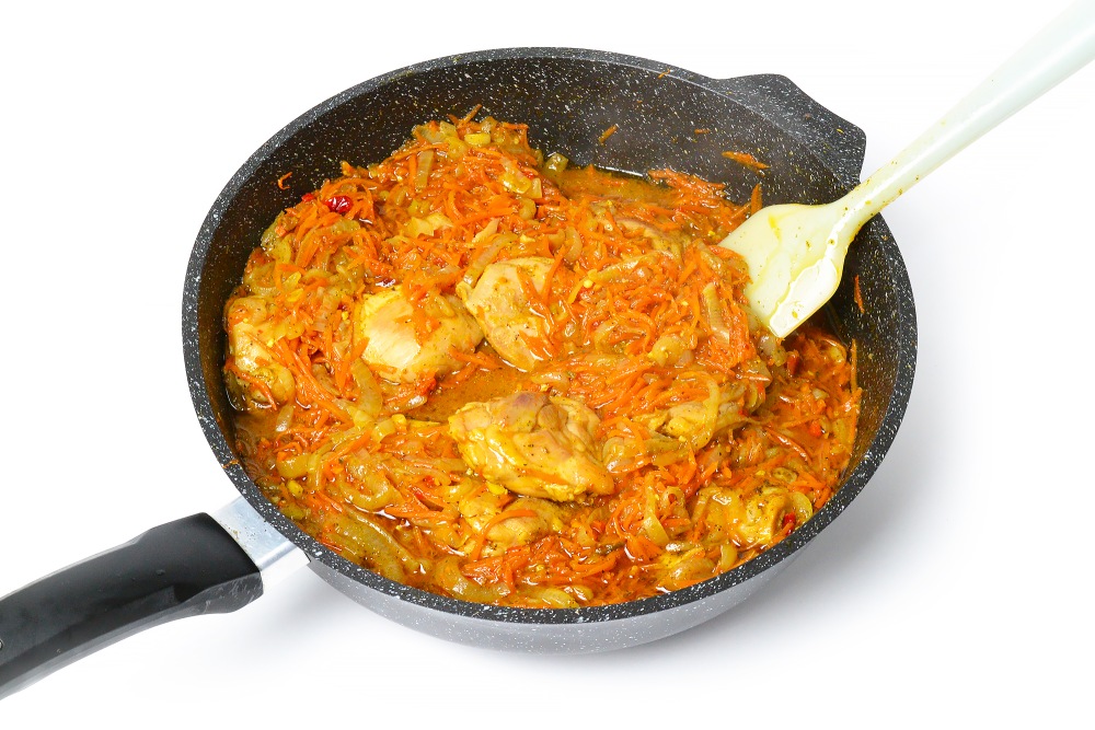 Что улучшит вкус тушеной курицы с морковью и луком: