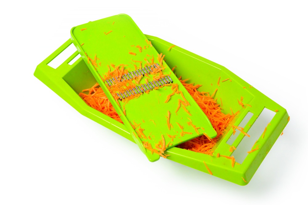 Морковь натереть на терке для корейской моркови. Либо просто на крупной терке. Также подойдет насадка для слайсера «мелкий брусок».