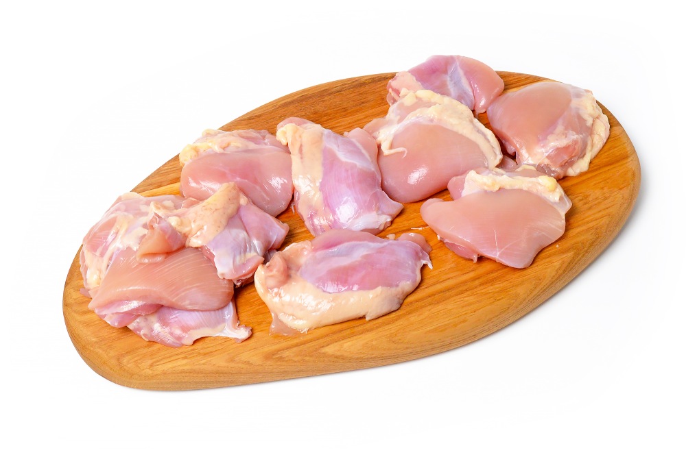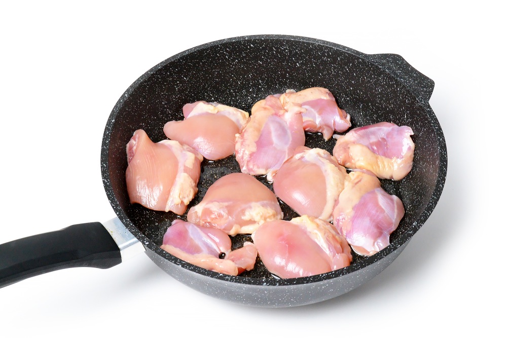 Вырезать из филе хрящи, если присутствуют. Разрезать на 2-3 части. Мелко резать не нужно. Если используете бедрышки с костями, разрубите их на 2 части.