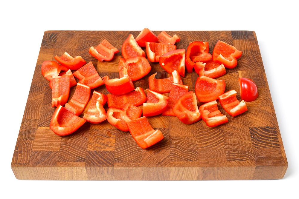 Крупно нарезать сладкий перец.