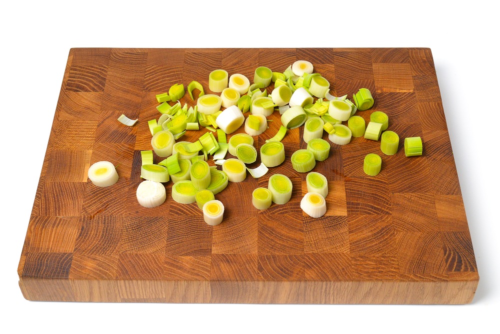 Толстыми кольцами нарезать порей.