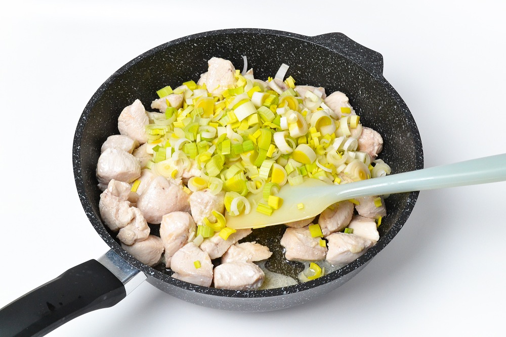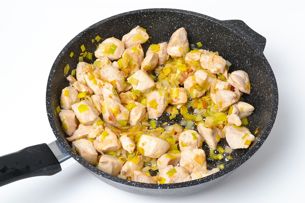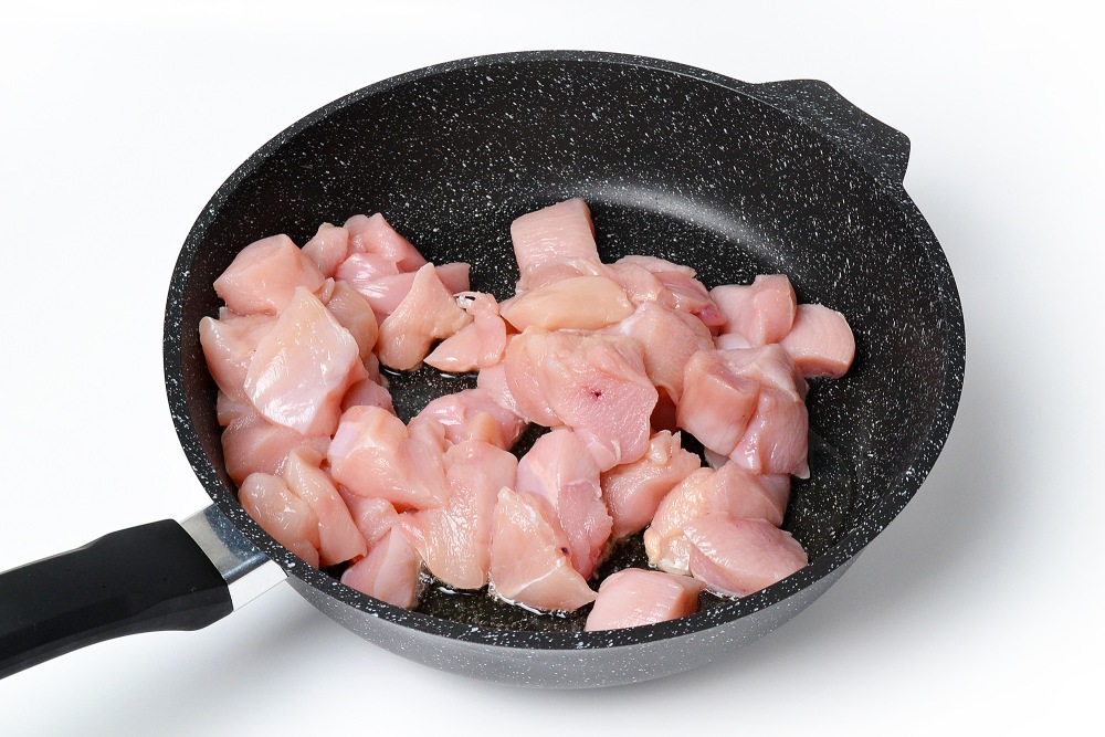 – Не нарезайте курицу слишком мелко, иначе она станет сухой.